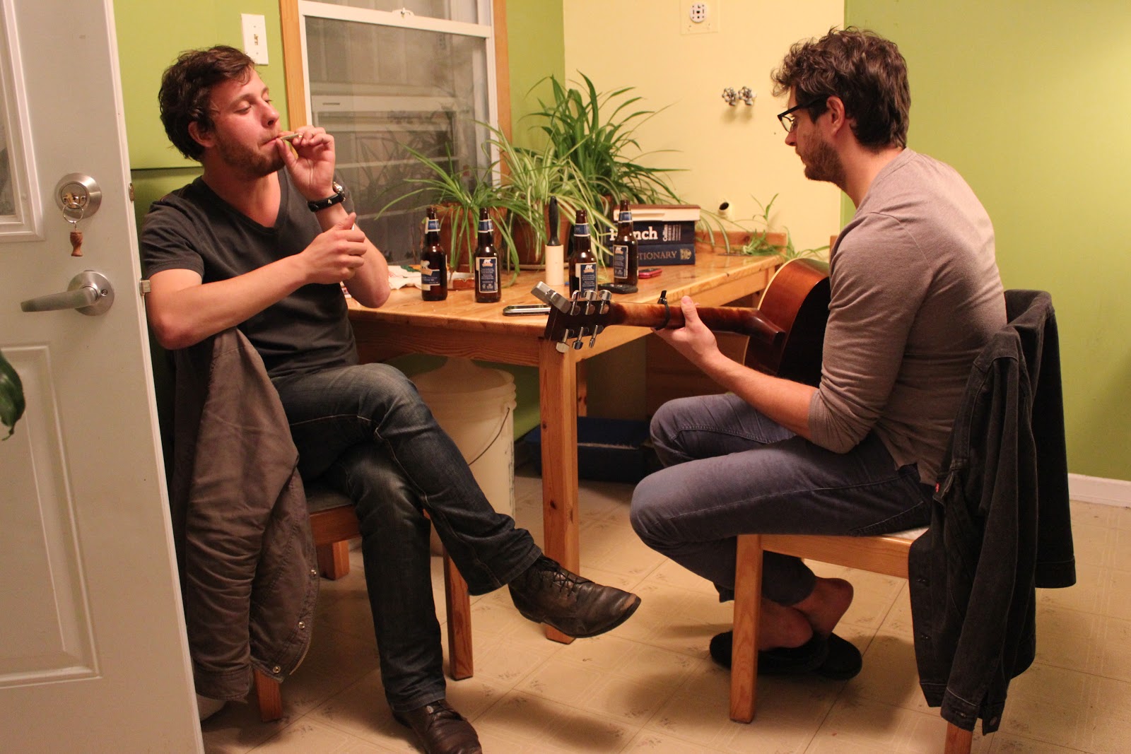 He plays his guitar for hours